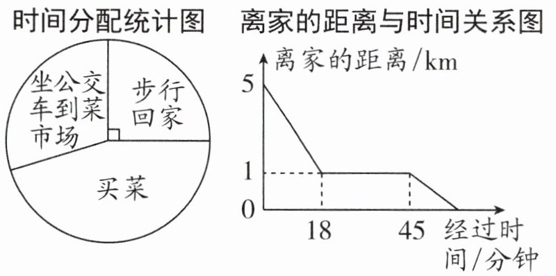 7. 王阿姨从单位下班先到菜市场买菜,再回家。下面两个图记录了她的行程。
