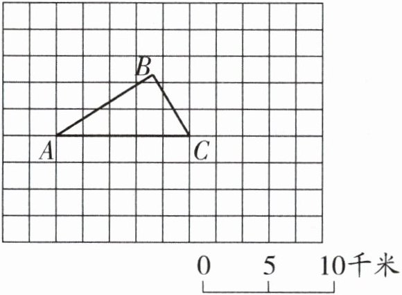 )。(2) 海军通信兵沿 $ AB $、$ BC $、$ CA $ 骑自行车绕岛一周,需 6 小时,若海军计划按 $ 2:1 $ 的比填海造岛(将三角形按 $ 2:1 $ 的比放大),则海军通信兵在速度不变的条件下,沿新岛骑行一周需(
