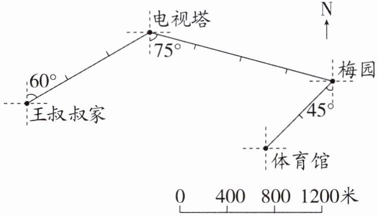 )米。(2)电影院在街心花园的北偏东 45°方向 800 米处,请在图中标出电影院的位置。