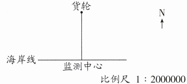 2. 如图,上午 9 时监测中心测得正北方向有一艘货轮沿正东方向航行,速度是 16 千米/时。几小时后货轮到达监测中心的北偏东 45°方向?在图中量一量,画一画,再算一算。