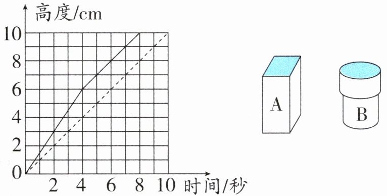 6. 用相同且均匀的速度分别向A、B两个容器(涂色的上底面为进水口)里面注水,注满即停,现根据注水时间和水位高度变化情况制成了折线统计图。