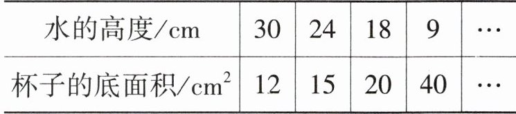 (2) 当水的高度是 15 厘米时,杯子的底面积是(