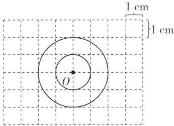 (1)以点 $ O $ 为圆心,按 $ 2 : 1 $ 的比画出圆放大后的图形。