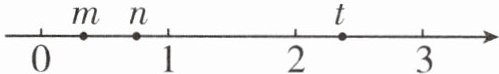 (2) 数 $m$、$n$、$t$ 的位置如图所示,下面选项中,与数 $t$ 最接近的是(