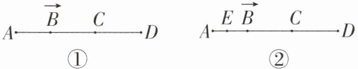3. 线段上的一点把线段分成相等的两部分,这个点叫作线段的中点。如图①,点 B 是线段 AD 上的一个动点,从点 A 到点 D 以 2 厘米/秒的速度运动,点 C 是线段 BD 的中点, $AD = 10$ 厘米。
