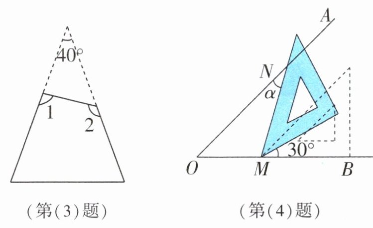 (3)如图,将等腰三角形纸片剪去顶角后得到一个四边形, $∠ 1 + ∠ 2 =$ (