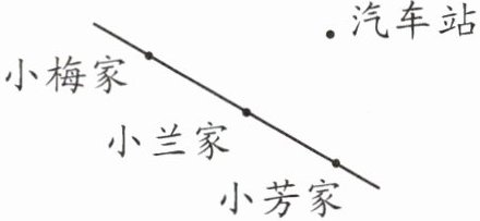 6. (1)如图,小梅家、小兰家和小芳家附近有一个汽车站,现在要经过汽车站修一条公路,使她们三家到这条公路的距离都相等,应该怎样修? 画一画。