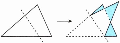 (3)一个三角形沿虚线折叠后得到一个多边形(如图),这个多边形的面积是原三角形面积的 $\frac{5}{8}$。已知多边形中涂色部分的面积为 8 平方厘米,则原三角形的面积为(