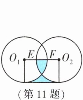 11. 转化思想 如图,$O_1$、$O_2$分别是所在圆的圆心。如果两圆的半径都是 2 厘米,并且图中两块涂色部分的面积相等,那么 EF 的长度是(
