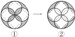 提示:如图①,在大圆内画一个最大的正方形,把正方形内的涂色部分平均分成 8 份,然后把这 8 个小涂色部分移至正方形外的空白部分(如图②)。涂色部分的面积 = 大圆的面积 - 正方形的面积 = 3.14×(10÷2)² - 10×10÷2 = 28.5 (平方厘米)。