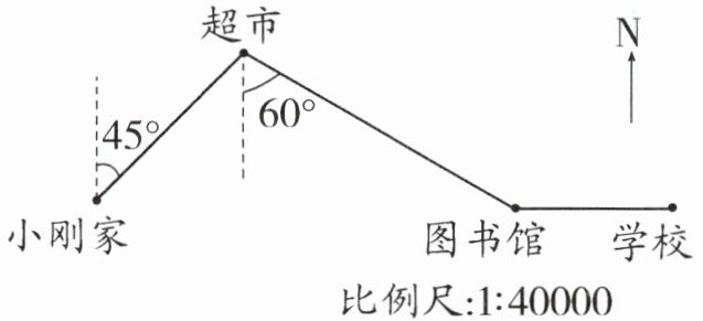答案:3.小刚从家出发,先向北偏东45°方向行800米到达超市,再向南偏东60°方向行1200米到达图书馆,最后向东行600米到达学校。
