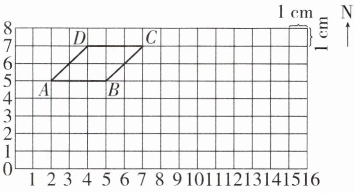 (2) 把平行四边形ABCD按2:1的比放大,放大后的图形中点A对应点的位置用数对表示为(6,1),在图中画出来。