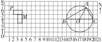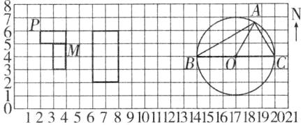 )。3. 直角三角形的斜边 BC 是圆的直径,O 是圆心,AO = AC。如果每个小方格表示边长为 1 厘米的小正方形,那么点 A 在点 O(