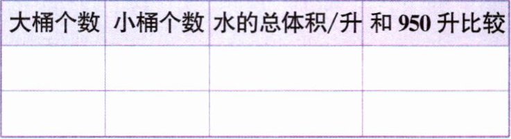 2. 60个桶一共装了950升水,大桶每桶装17升,小桶每桶装10升,那么大、小桶各有多少个?