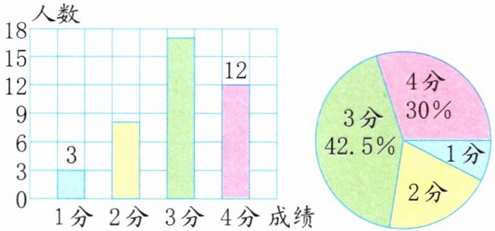 3. (思维过程)随机抽取学校六年级若干名学生进行体能测试,调查结果绘制成下面的条形统计图和扇形统计图。根据图中信息,求出这些学生的平均分。