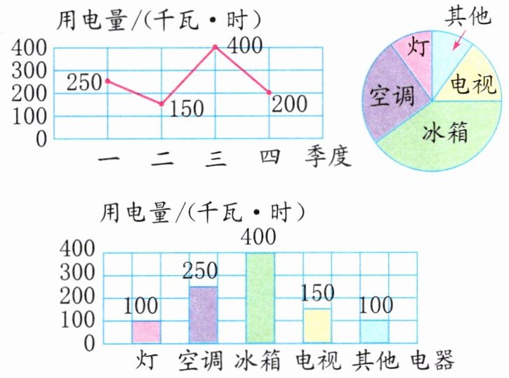 )统计图中可以看出 2023 年小泽家各季度用电量的变化情况;从(扇形