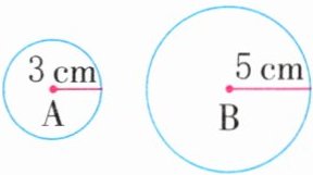 3. (说理表达)(1) 写出A圆和B圆的半径的比以及周长的比,这两个比能组成比例吗?