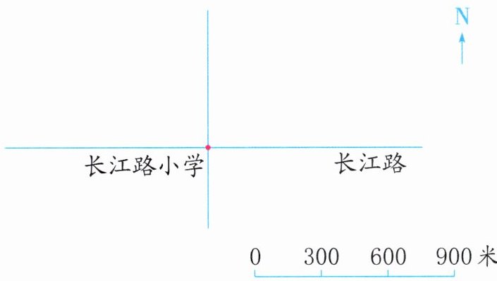 (2)长江路南边 300 米是南环路,南环路与长江路平行,请在图中表示出南环路的位置。