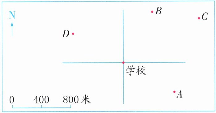 3. (苏州真题)如图,以学校为观察点,图书馆在学校北偏东 $ 60^{\circ} $ 方向 1200 米处,估计图中表示图书馆位置的是(