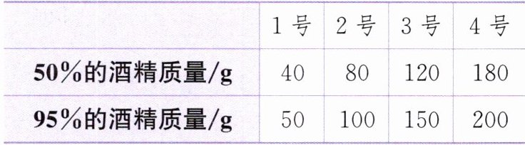 2. 青墩小学用浓度为$95\%$的酒精和$50\%$的酒精配制出浓度为$75\%$的酒精对教具进行消毒,配制的四杯酒精用量统计如下。