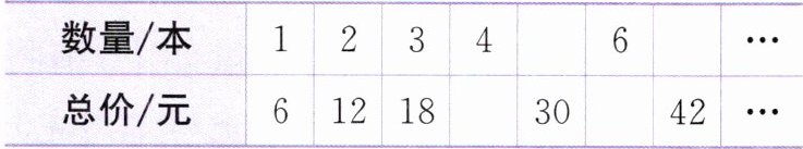 1. (生活体验)小张购买笔记本的数量与总价的情况如下表。