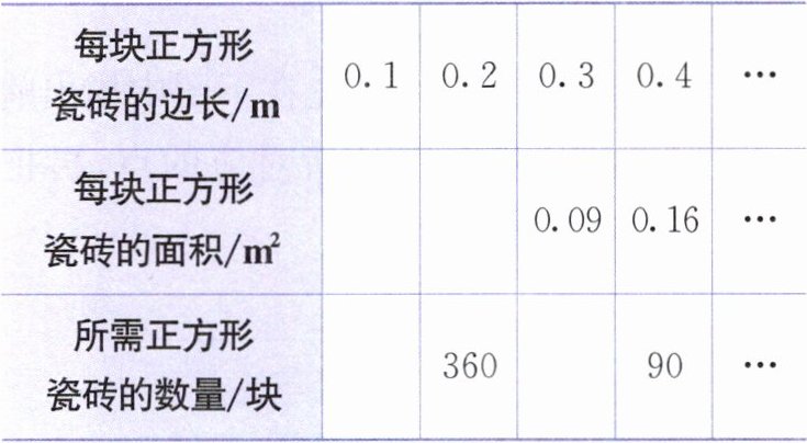 每块正方形瓷砖的面积/m² 0.01 0.04 0.09 0.16 ⋯