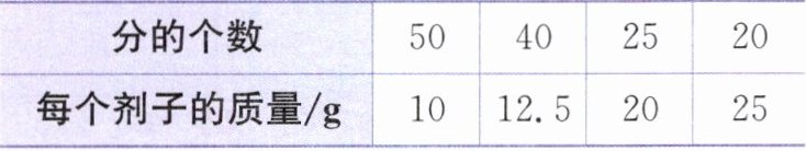1.(传统文化)“清明前后吃艾粄,一年四季不生病”是流行于客家地区上千年的习俗。妈妈用艾草和糯米粉等做成一个面团,把这个面团分成若干个相同的剂子,分的个数和每个剂子的质量如下表所示。