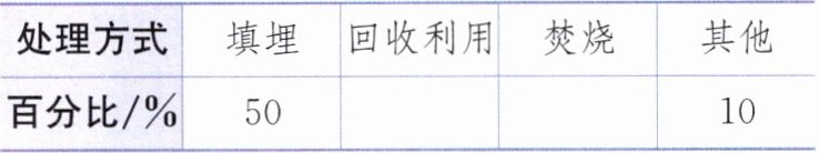 3. (环保意识)某市固体垃圾处理方式如统计图、表所示(不完整)。有 50%的固体垃圾采取了填埋的处理方式,采取焚烧方式的固体垃圾是采取回收利用方式的 $ \frac{3}{5} $,有 10%的固体垃圾采用了其他处理方式。