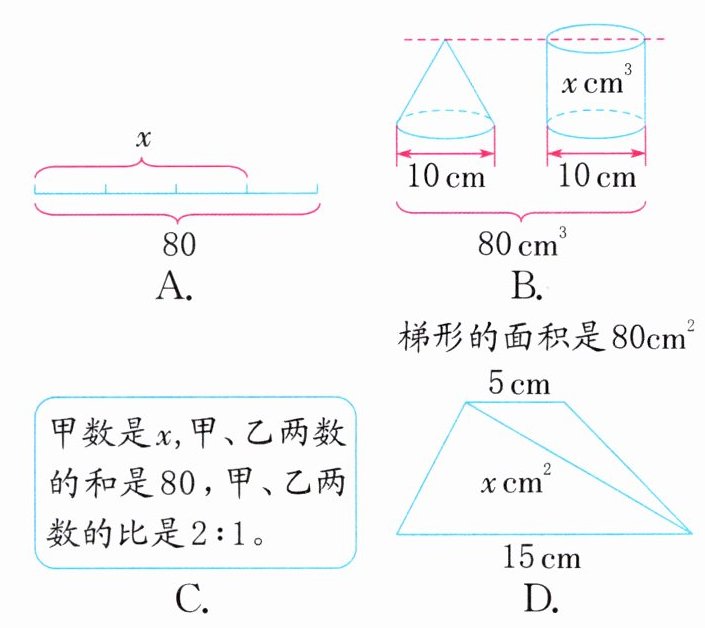 1. 不能用方程$\frac{1}{3}x + x = 80$解答的是(