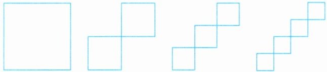 4.(说理表达)下面的图形都是用 $ 48 cm $ 长的绳子围成的,围成的正方形的个数与每个正方形的边长是否成比例?若成比例,则成什么比例?为什么?