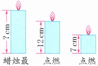 解析:根据题意可知,蜡烛每分钟燃烧的长度相等,原来蜡烛的长度减去点燃8分钟后蜡烛还剩的长度=蜡烛短的长度,蜡烛短的长度:8分钟=蜡烛每分钟燃烧的长度。点燃8分钟后蜡烛剩下的长度比点燃18分钟后蜡烛剩下的长度多(12−7)cm,这样也能得到蜡烛每分钟燃烧的长度。列比例求解即可。