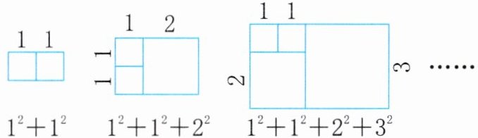 3. (扬州真题)小华计算$1^{2}+1^{2}+2^{2}+3^{2}+5^{2}+8^{2}+13^{2}$这样的算式时,想到用“数形结合”的方法来探究,他以这组数中各个数作为正方形的边长构建正方形,再拼成长方形来研究,过程如下:
