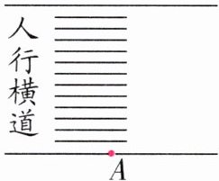 3.(生活体验)小轩每天上学时都要经过一个红绿灯路口。如图,星期五小轩走到点 $A$ 处时恰好红灯变绿灯,画出小轩从点 $A$ 安全过马路的最短路线。在对面马路边人行横道的右边有一棵榕树,已知榕树与点 $A$ 的连线正好与对面的马路边成 $60^{\circ}$ 夹角,请用“$\otimes$”标出榕树的位置。