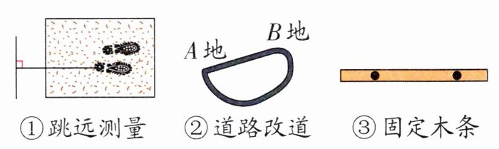 (1)(无锡真题)下面的日常现象可以用“两点之间,线段最短”来解释的是(