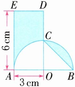 3. 四边形$AODE$是长方形,以点$O$为圆心、线段$AO$的长为半径画一个半圆,组成如图所示的图形,求涂色部分的面积。