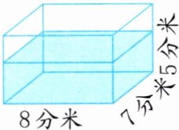 4. (苏州真题)如图所示为一个密封的长方体玻璃水箱,长 8 分米,宽 7 分米,高 5 分米。现在水箱里的水的高度是 3 分米,则水箱里的水与水箱的接触面积是多少平方分米?