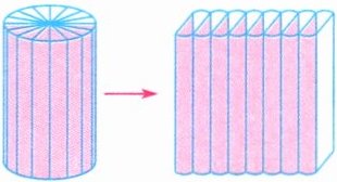(3)将一个圆柱按如图所示的方式切开,拼成一个近似的长方体。已知圆柱的半径是 2 cm,拼成近似的长方体后,长方体的宽和高的比是 1∶3。这个圆柱的体积是(