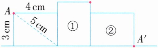 4.(操作探究)把一个长方形(长 4 cm、宽 3 cm、对角线长 5 cm)按如图所示的方式进行翻转,翻转一次到①,翻转两次到②……点 $ A $ 翻转到点 $ A' $ 时所经过的路程有多长?