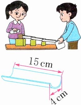 4. (学科融合)连筒引水是利用斜面的原理把水从一处引到另一处。淘淘和月月用几个半圆柱形塑料槽搭一个较长的斜面,模拟连筒引水。每个塑料槽的形状如图所示,每个塑料槽用了多少平方厘米的塑料板?
