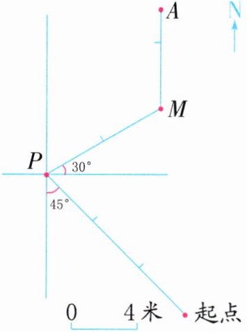 (2)从点A向正南方向行驶6米到点M,再向南偏西$60^{\circ}$方向行驶8米到点P,最后向南偏东$45^{\circ}$方向行驶12米回到起点