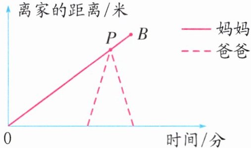 4. (数形结合)如图,妈妈步行去超市购物,出门后不久,爸爸发现妈妈忘记带购物卡了,便马上骑车去追她。爸爸把购物卡交到妈妈手里后立即以同样的速度原路返回,妈妈又走了6分钟到达超市(点B),这时爸爸也刚好到家。爸爸骑车的速度是妈妈步行速度的5倍,则妈妈从家到超市用了(