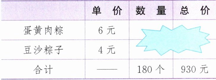 设卖出蛋黄肉粽$x$个,则卖出豆沙粽子$(180 - x)$个。