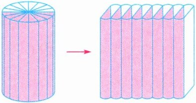 6. 把一个高5分米的圆柱的底面等分成扇形,再把圆柱沿底面半径且垂直于底面切开,拼成一个近似的长方体,表面积增加了40平方分米。圆柱的体积是(