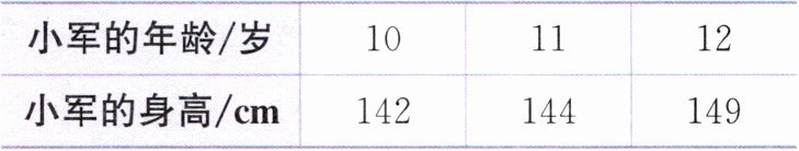 ① 小亮说:“小军的身高随着年龄的增加而增加,所以小军的身高和年龄这两个量成正比例。”小亮说得对吗? 为什么?
