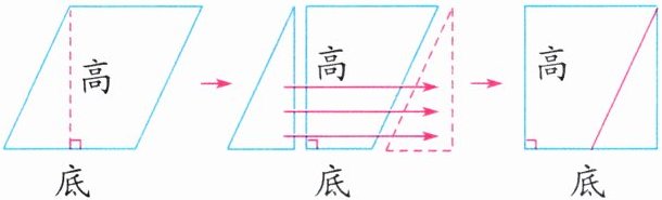 (5)(南京建邺区)数学思想方法是数学的灵魂。转化思想作为重要的数学思想方法之一,在我们的学习生活中,它无处不在。如在“曹冲称象”的故事里,把大象的质量转化为石头的质量;又如推导平行四边形的面积时,把平行四边形转化为长方形。(如图)