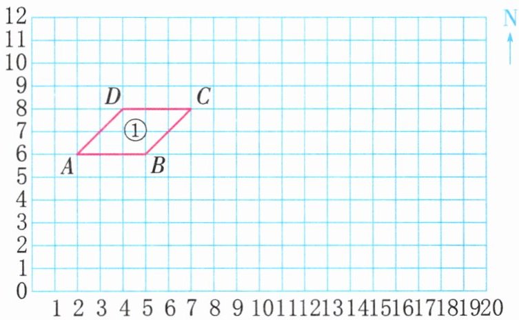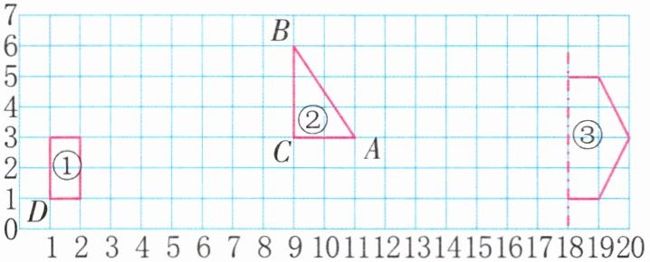 (3) 把图形②向右平移4厘米,画出平移后的图形,平移后顶点B的对应点的位置用数对表示为( , )。