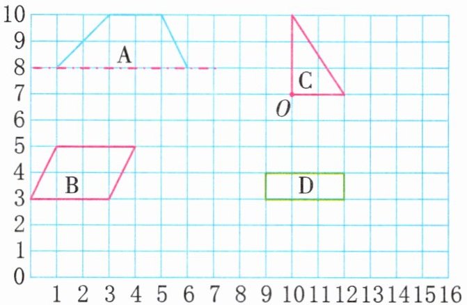 (2) 将图形B先向右平移4格,再向下平移2格,画出平移后的图形。