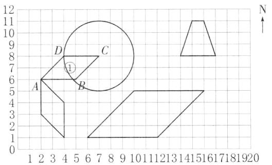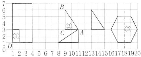 (3) 把图①按$2:1$的比放大,放大后点A的对应点的位置用数对$(6,1)$表示,画出放大后的图形,放大后的图形面积是放大前图形面积的(
