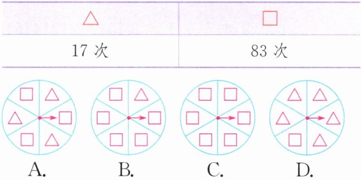 (2)(南通海门区)某商店在促销抽奖活动中设计了一个抽奖转盘。下面是100名顾客的抽奖结果,根据表中的数据,这家商店设计的转盘最有可能是(