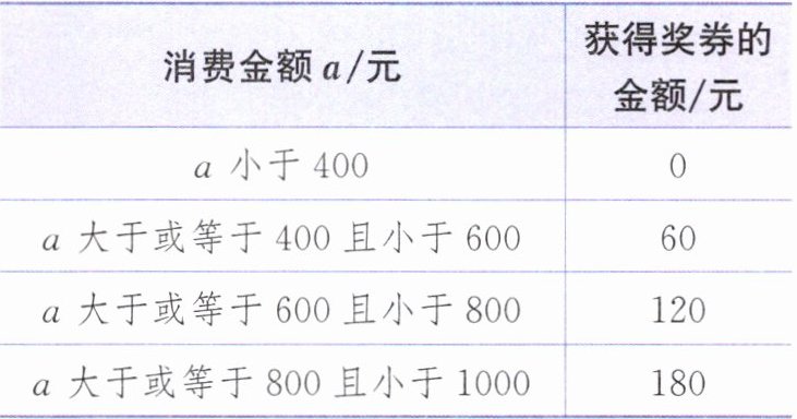 7. (南通崇川区)某商场在促销期间规定:商场内所有商品按标价的80%出售。若消费金额不足1000元,则按如下方案获得相应金额的奖券:
